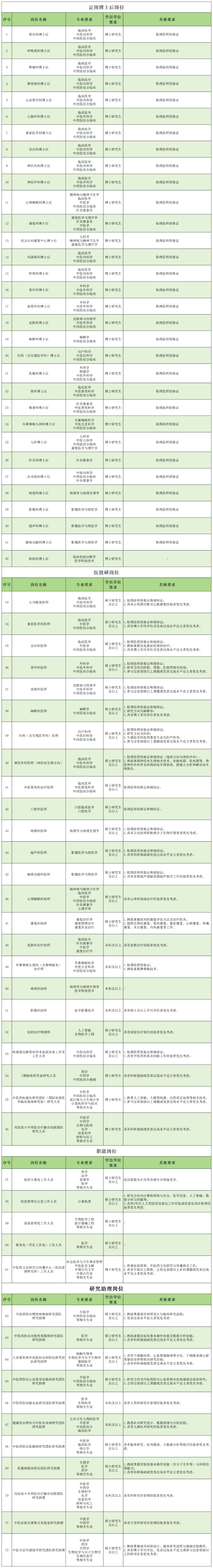 (4)留院政策:定岗博士后期满考核合格,一般直接留院,符合条件者可考取事业编制。